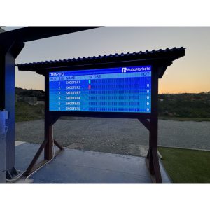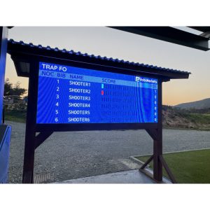 Среднее квалификационное табло 2500 мм х 1000 мм высокого разрешения для использования на открытом воздухе для отображения результатов во время проведения соревнований по стендовой стрельбе.